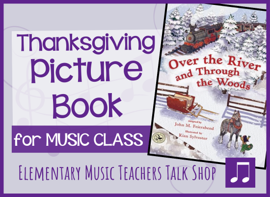 Looking for a great read aloud book for music class in November? I love the John Feierabend series of beautifully illustrated songs. Feierabend’s picture book Over the River and Through…