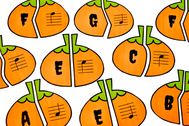 Looking for a fun and easy music game to practice treble clef note names? These cut pumpkins can be used as a center activity or for the class game described below: