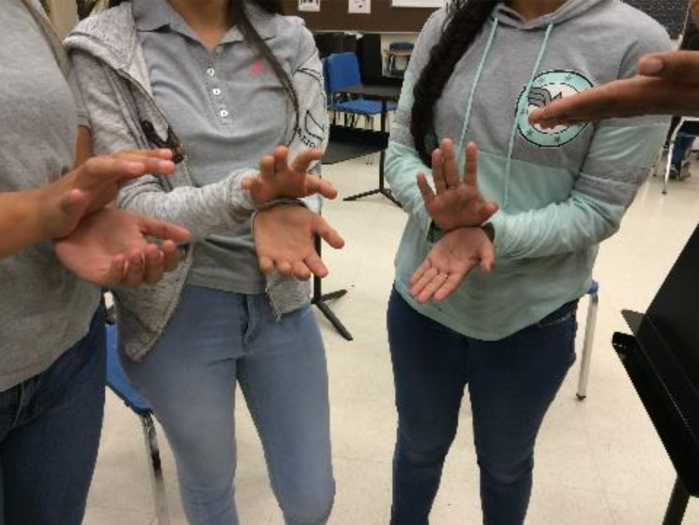 Have students form a circle with hands open like this: